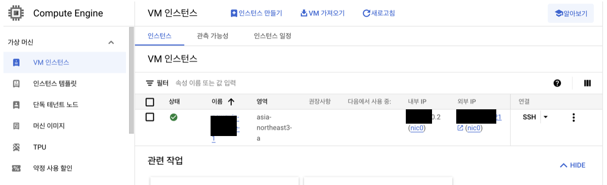 여기까지해서 GCP에 프로젝트를 만들고 웹 서비스를 올릴 인스턴스를 생성했습니다.