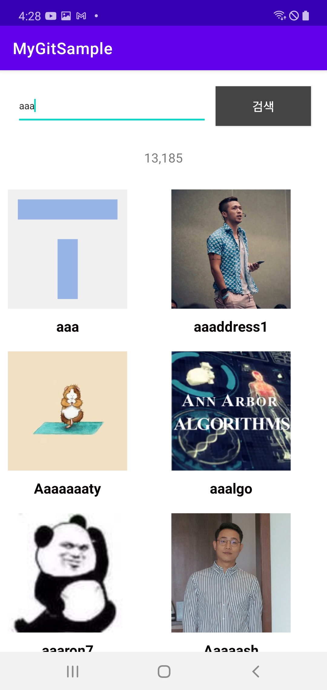 이번 글에서는 검색으로 가져온 사용자를 Paging library를 사용하여 화면에 보여주는 부분을 처리합니다.