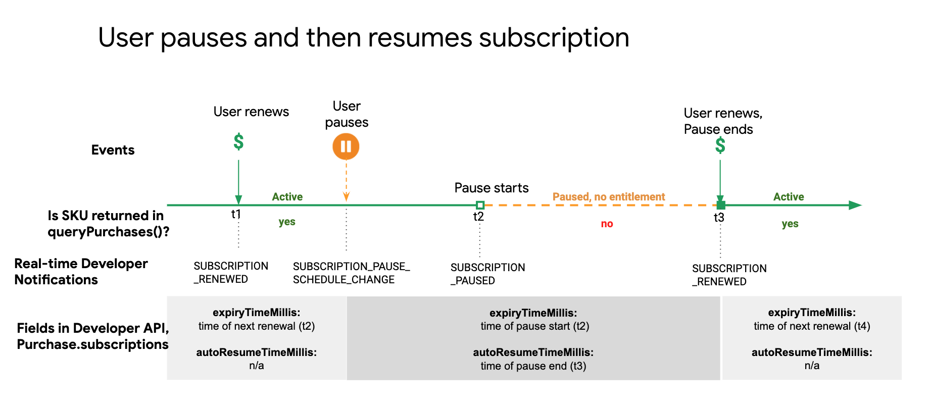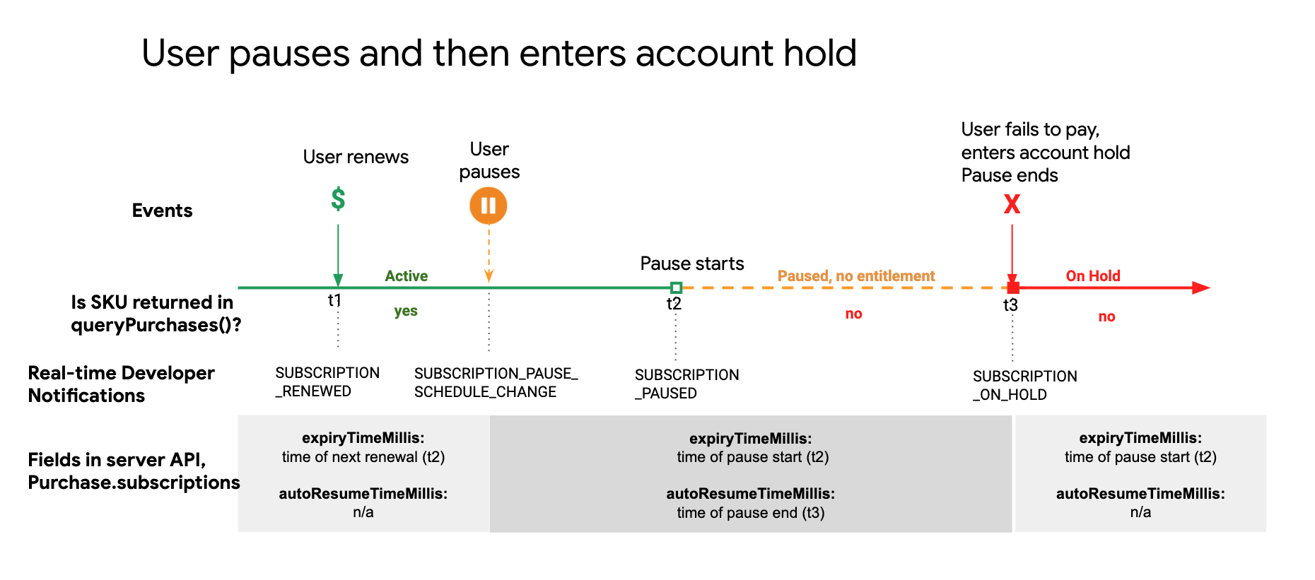* 참고: 사용자가 결제 수단을 수정하고 정기 결제를 복구하면 구매 토큰은 사용자의 계정 보류가 시작되기 전과 동일합니다.