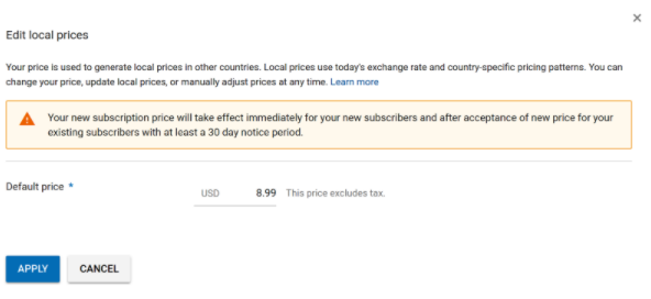 * 경고: Google을 통한 구독의 정기 결제 가격을 변경하면 안됩니다.