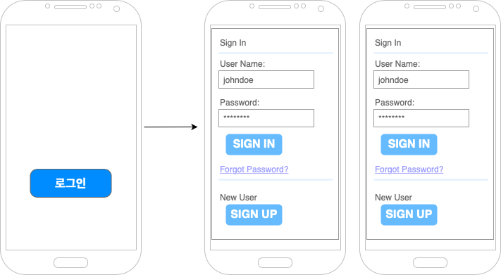“사용자가 로그인 버튼을 눌렀을때 해당 사용자의 기본 단말 정보를 서버로 전송한 후 로그인 화면으로 이동한다.”
